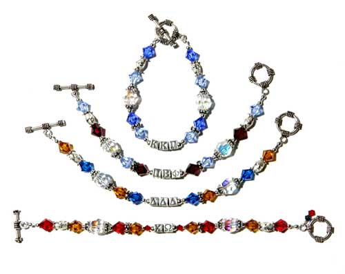 Show Your Colors! You will wear these beautiful bracelets with pride as you announce your sorority affiliation. Each bracelet sparkles with Austrian Crystals and sterling silver. Customize your bracelet by adding a charm dangle of your school colors or a birthstone of a Big Sister/Little Sister.